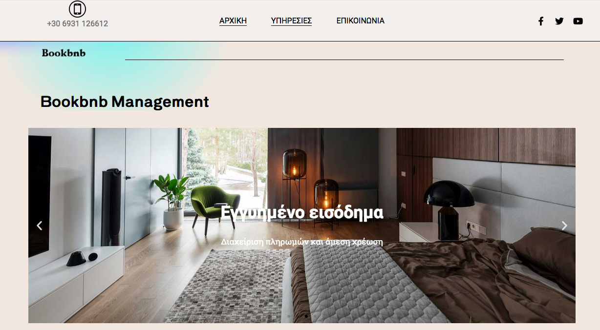 Ιστότοπος μίας σελίδας με ενδιαφέροντα εφέ εικόνας στην κύλιση και ένα καλλιτεχνικό πολύχρωμο φόντο δημιουργούν μια χαλαρωτική και σίγουρη αίσθηση σε πιθανούς πελάτες.
