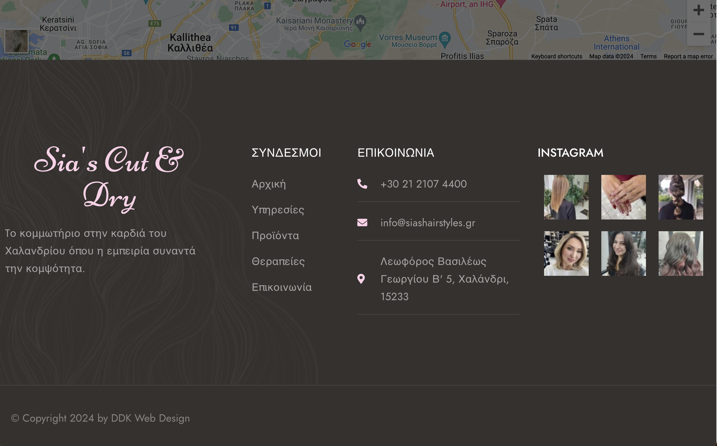 Tο κομμωτήριο στην καρδιά του Χαλανδρίου όπου η Σία, μια εξαιρετική επαγγελματίας, με πολυετή παρουσία στον χώρο της τηλεόρασης, δημιουργεί εμπειρίες ομορφιάς. Φωτογράφισαμε τον χώρο της και κατασκευάσαμε τον ιστοσελίδα της. Η επιχείρηση βραβεύτηκε με το Coiffure Awards 2023 για την ψηφιακή της παρουσία.